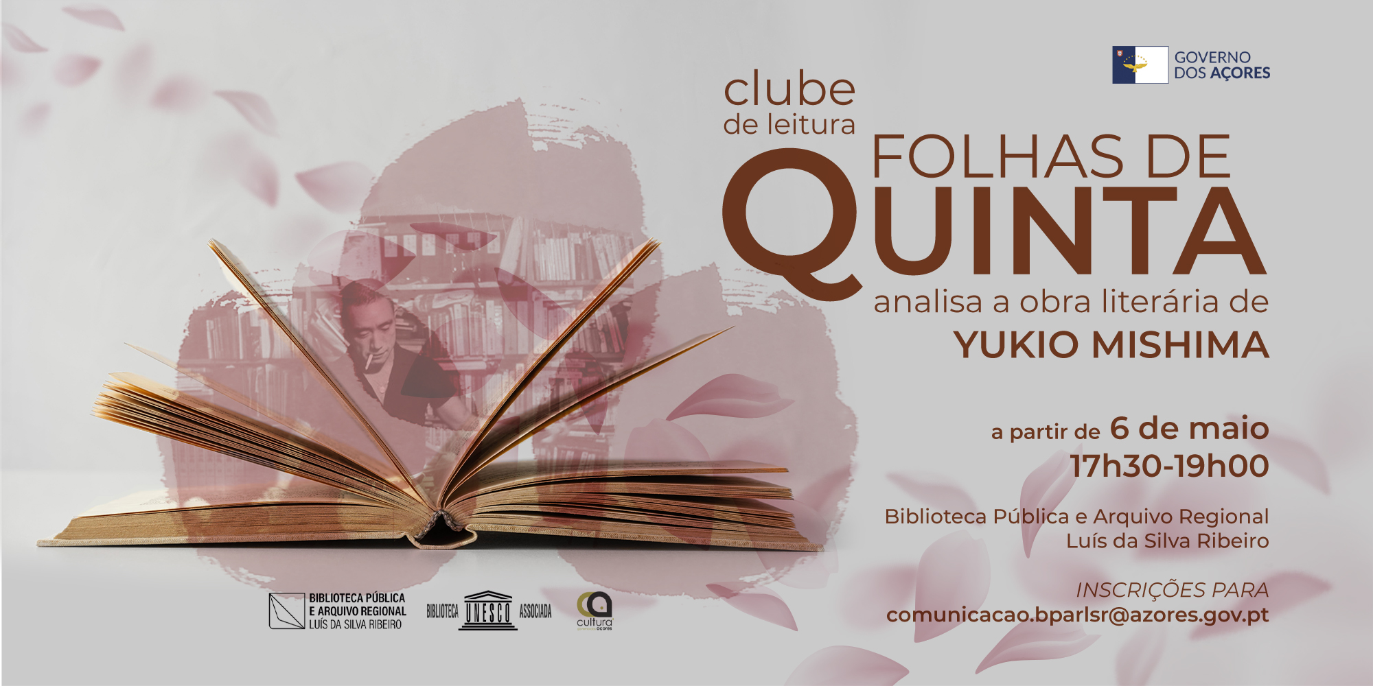 O Clube de Leitura “Folhas de Quinta” da Biblioteca Pública e Arquivo Regional Luís da Silva Ribeiro vai dedicar o mês de maio à obra de Yukio Mishima, abrindo inscrições aos interessados em participar nas sessões do mês de maio, que têm início no dia 6, pelas 17h30.