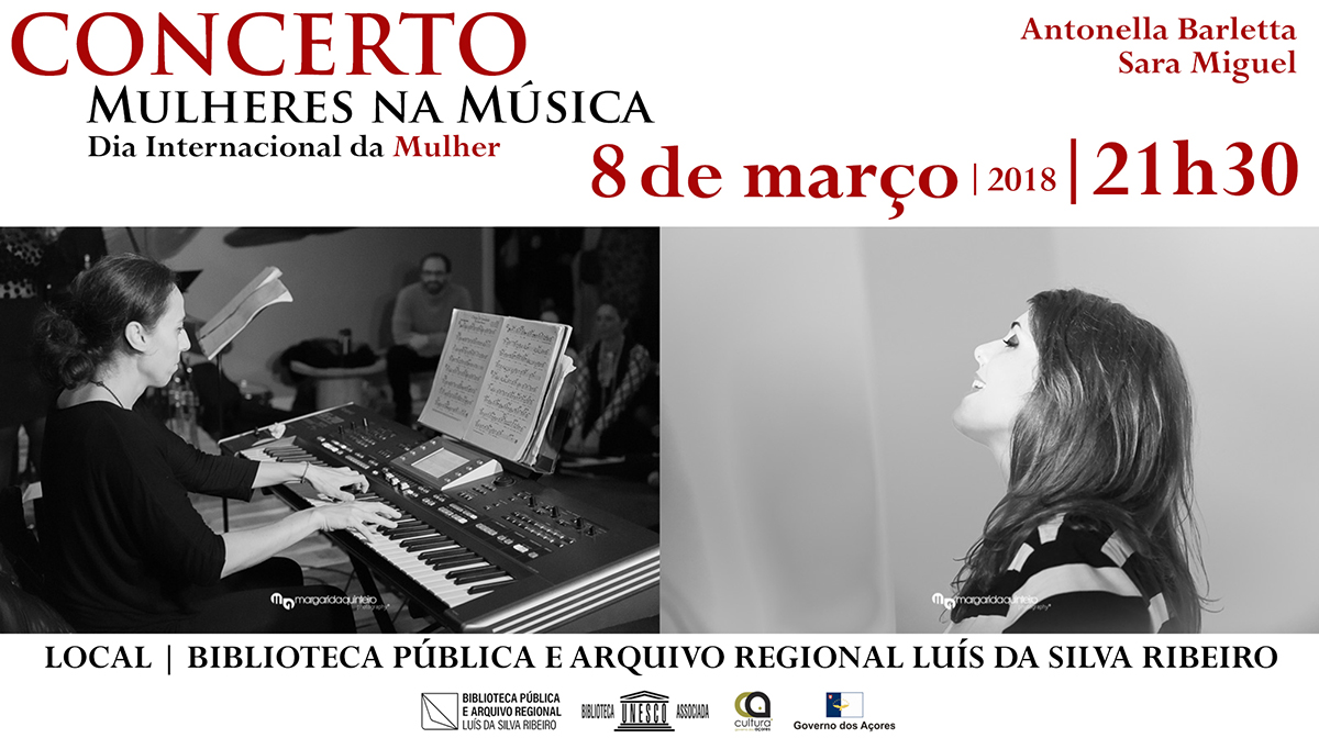A Biblioteca Pública e Arquivo Regional Luís da Silva Ribeiro celebra o Dia Internacional da Mulher com um concerto onde serão interpretados temas compostos por mulheres, celebrizados por mulheres ou em que a mulher é a inspiração central, mostrando quão basilar e incontornável é o eterno feminino no imaginário artístico musical.