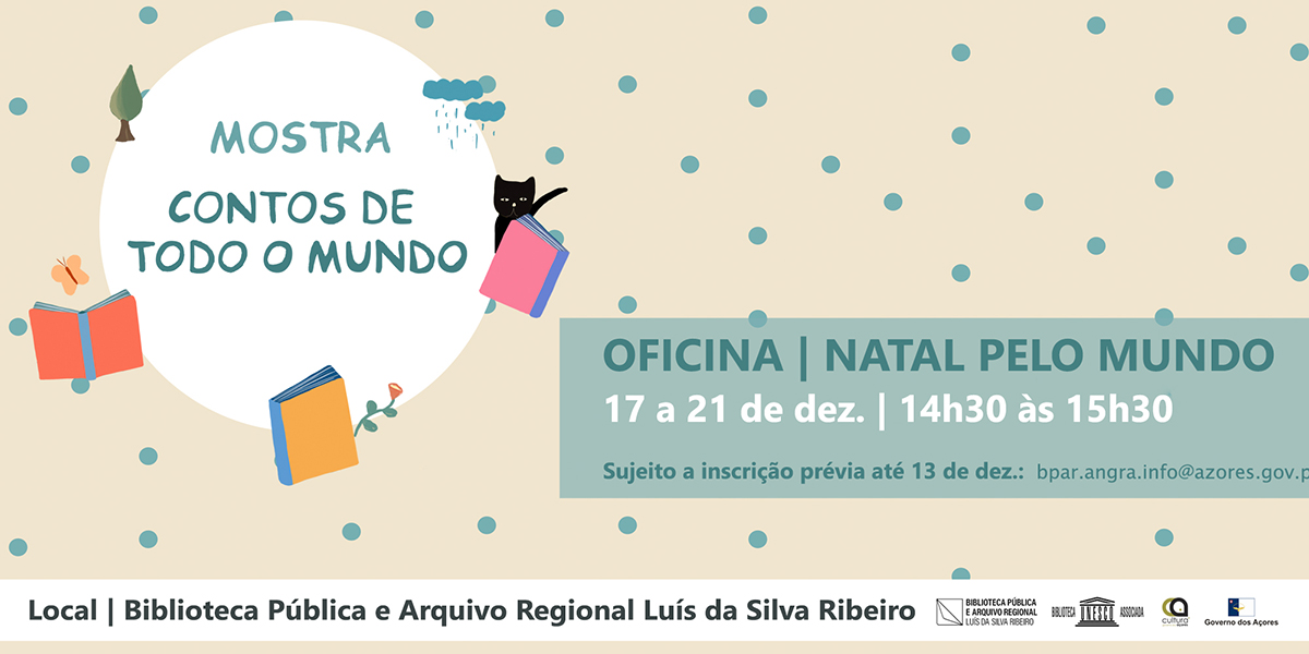 A Biblioteca Pública e Arquivo Regional Luís da Silva Ribeiro promove, no âmbito da Mostra “Contos de Todo Mundo”, a oficina “Natal pelo mundo”, destinada a crianças e jovens dos 6 aos 13 anos de idade.