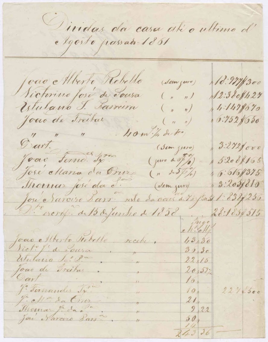 Lista de dívidas da Casa de Teotónio de Ornelas até 31 de agosto de 1861.