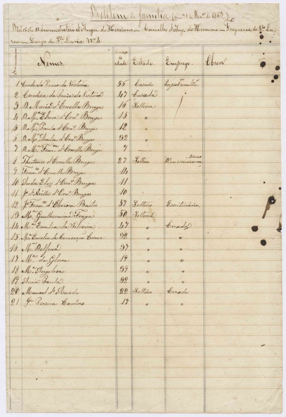 Família e criados da Casa do Conde da Praia da Vitória em 31 de dezembro de 1863.